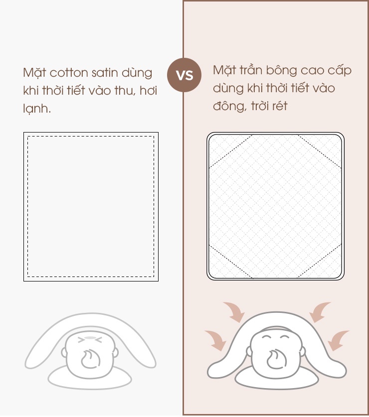 Khác với các loại chăn bông thông thường con chỉ có thể dùng vào mùa đông thì đối với chăn bông của Dono&Dono con lại có thể sử dụng cả 4 mùa nhờ thiết kế và những ưu điểm vượt trội: